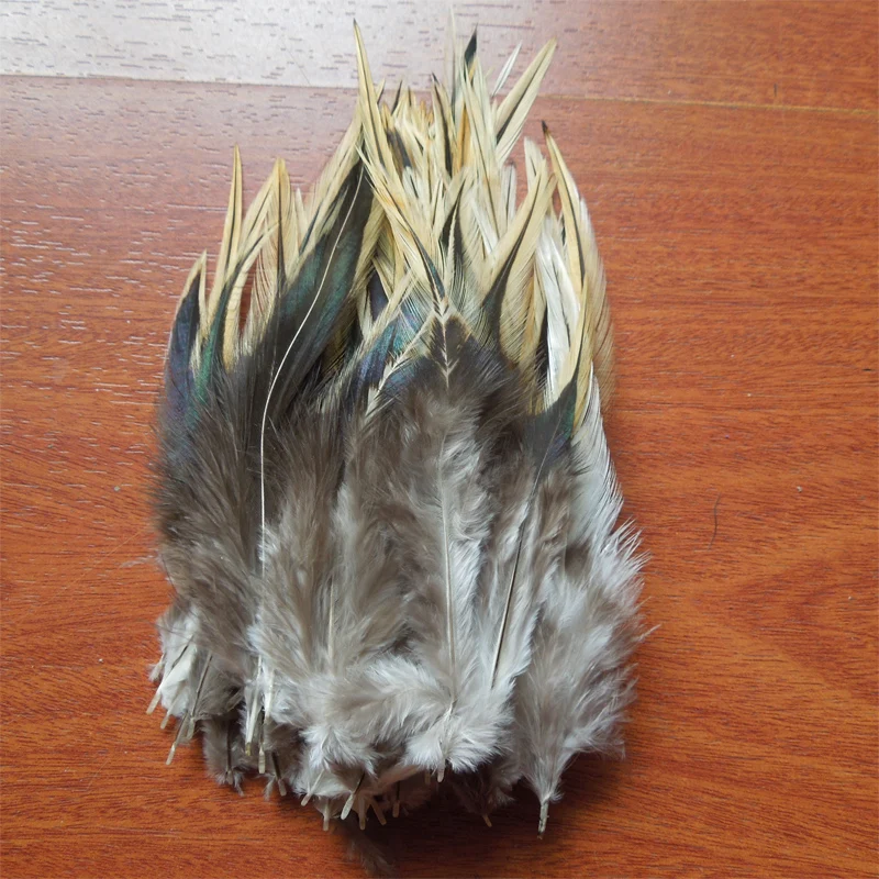 Декоративный шлейф! 100 шт./лот! 4-6 "10-15 см петух Барсук седла петух перья в натуральной с черной полосой в центре,