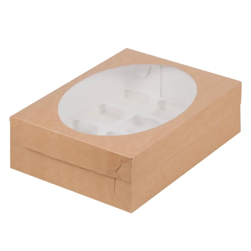 Коробки на 12 капкейков с окном и ложементом (вставка с отверстиями).