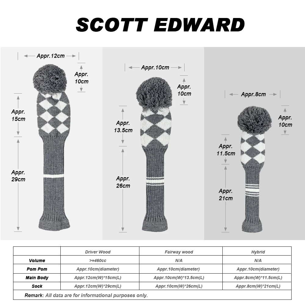 Вязаные чехлы для клюшек для гольфа, набор из 3 предметов для водителя, фарватера и гибрида