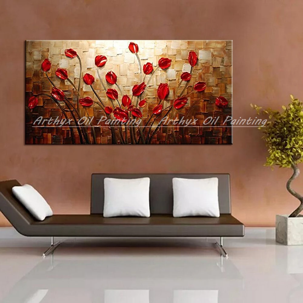 Описание товара:Arthyx ручной росписью текстурированная палитра нож красный цветок картина маслом абстрактный современный холст стены искусства для гостиной Декор картина.