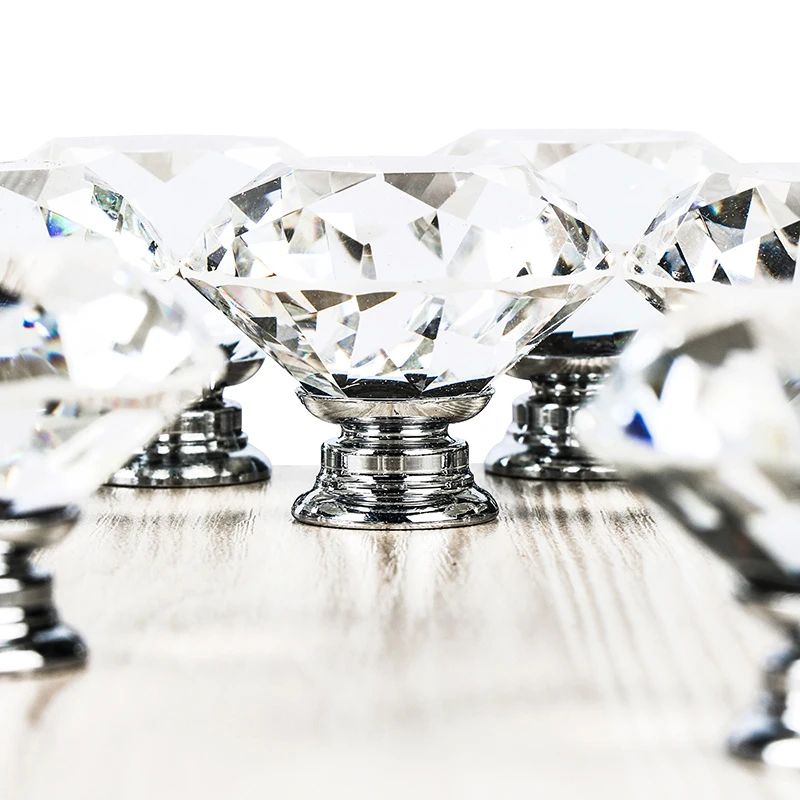 10 шт./лот 40 мм прозрачное стекло в форме алмаза, ручка для выдвижных ящиков шкафа, дверная Мебельная ручка
