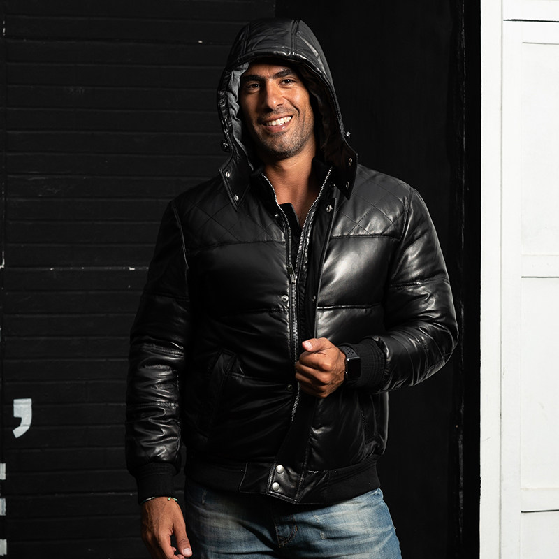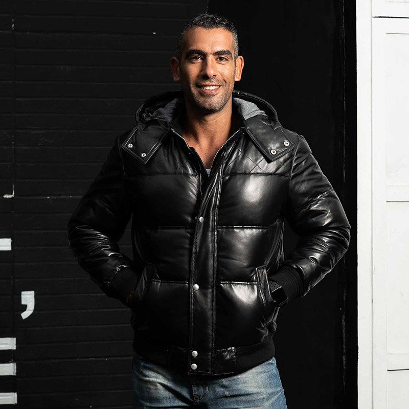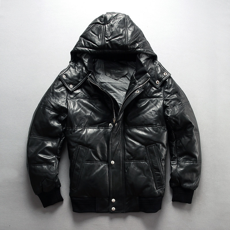 Натуральная кожа куртка зимняя Для мужчин реального енота меховой воротник