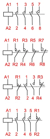 | 16А | 6А | 24 110 130 | 4NO 4NC 2NO + 2NC 3NO + 1NC | 4 | ||