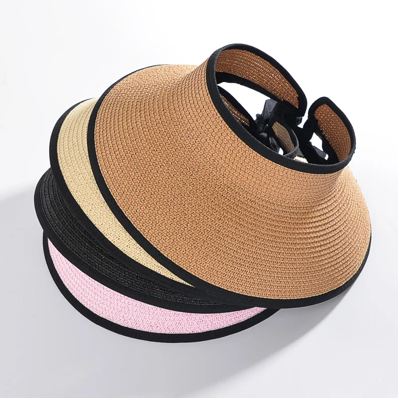 2017 новая летняя модная Женская Складная закатывающаяся солнцезащитная Кепка для пляжа с широкими полями, соломенный козырек, большая шляпа с полями, пустая верхняя кепка для женщинUS $15,00