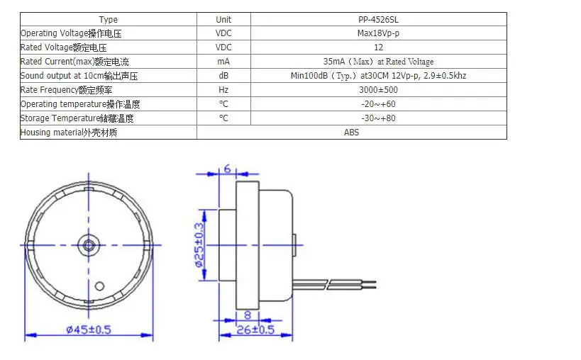 45 мм диаметр пьезоэлектрический активный зуммер 4526 непрерывный звуковой сигнал звук