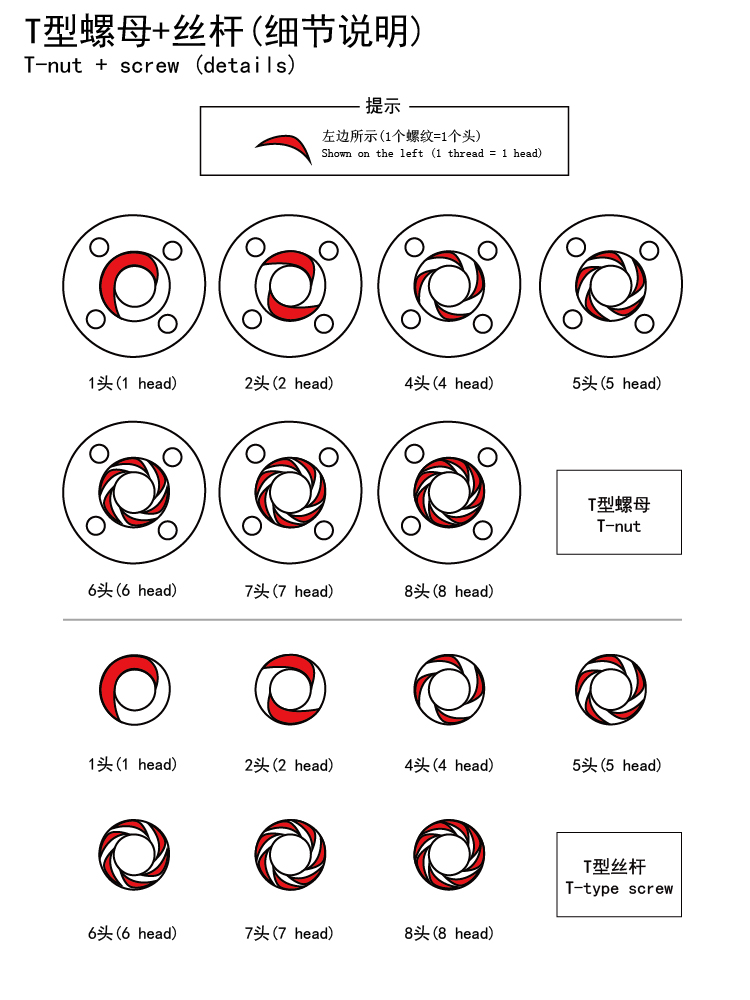 Шаг:1 ммСвинец:1 мм(Один-Головка, гайка поворачивается на один круг, винт вперед 1 мм)