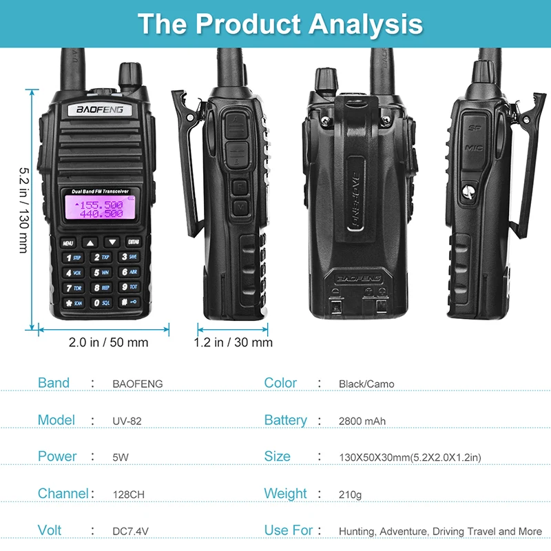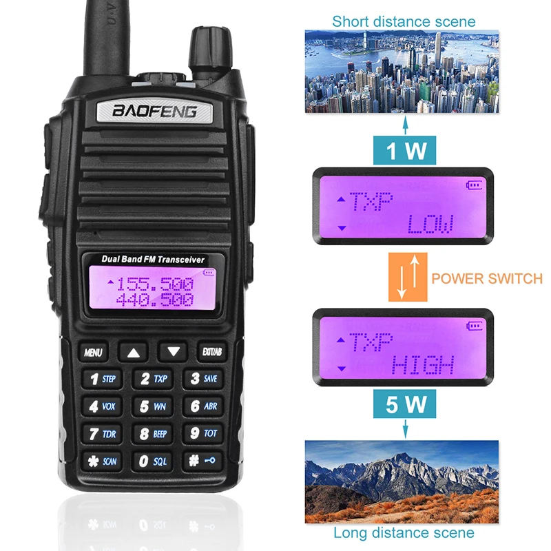 Серия UV-82 подняла планку по доступной радиотехнологии ham! По сравнению с предыдущими продуктами BaoFeng (UV-5R, GT-3 и UV-B) UV-82 поставляется с гораздо более громким динамиком (1 Ватт), гораздо более твердым чехол с большими кнопками, И Новый чипсет и печатная плата, которые превосходят диапазон, точность и вывод предыдущих чипсетов BaoFeng. Это не просто переделка, а новое радио с нуля.
