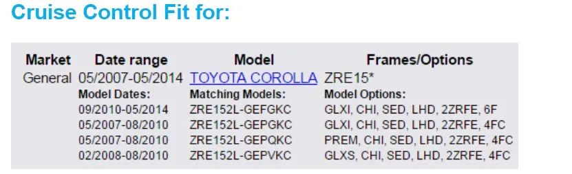 Примечание: модель отличается и год применяется на разных рынках.
