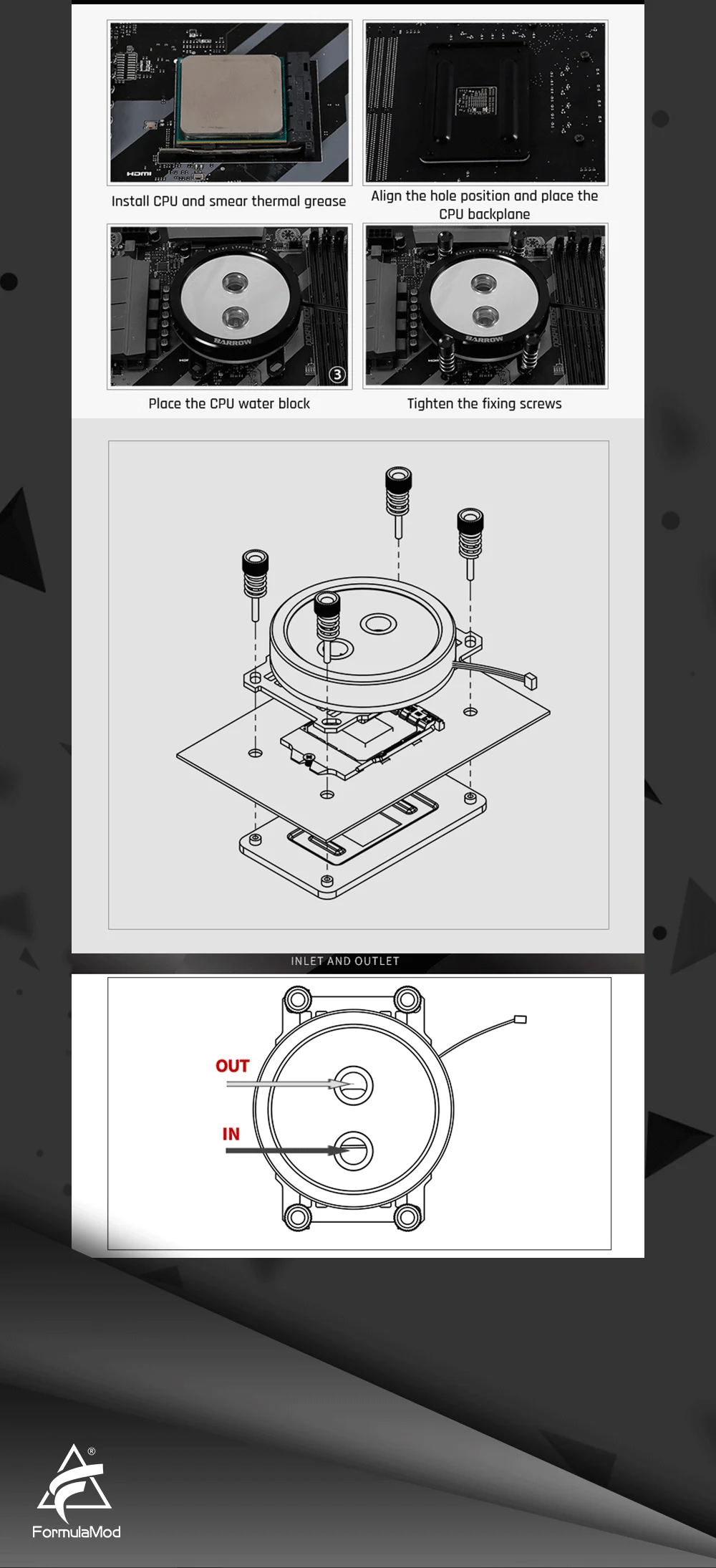 1. Проверьте, совместима ли система LRC RGB. 2. Список совместимости: совместим с гнездом Intel Lga115x(1150 1151 1155 1156) 3. Перед блоком воды рекомендуется установить фильтрующее устройство, чтобы эффективно предотвратить блокировку водного блока. 4. При установке, пожалуйста, обратите внимание на правильную ориентацию и положение входа и выхода