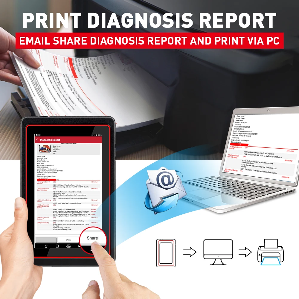 Launch pro mini может генерировать отчет о транспортном средстве на вашу электронную почту, затем вы можете загрузить отчет на компьютере для печати.