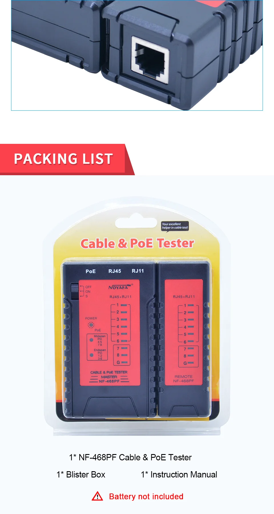 NF-468PF тестер непрерывности кабеля POE проверьте кабель RJ11 и RJ45 быстро обнаруживает Автоматическое тестирование непрерывности