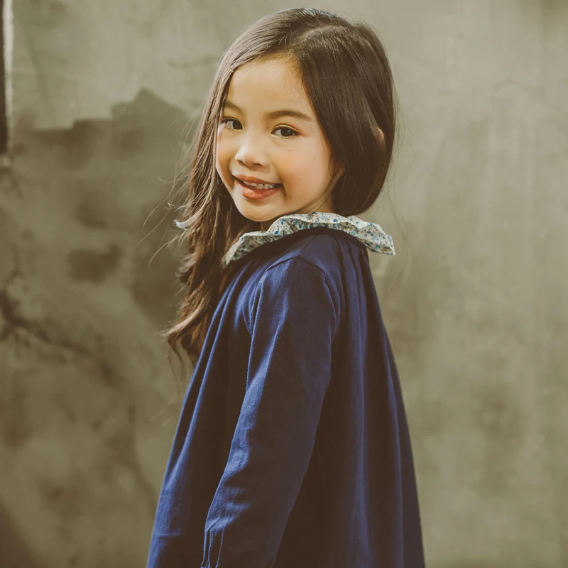 Новинка 2018, осенняя Корейская одежда для маленьких девочек, повседневное длинное платье для девочек с цветочным воротником, детское Хлопковое платье, детская одежда, платья для девочек, От 2 до 9 лет