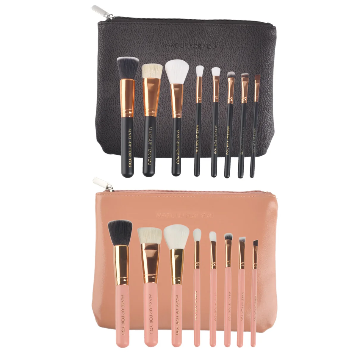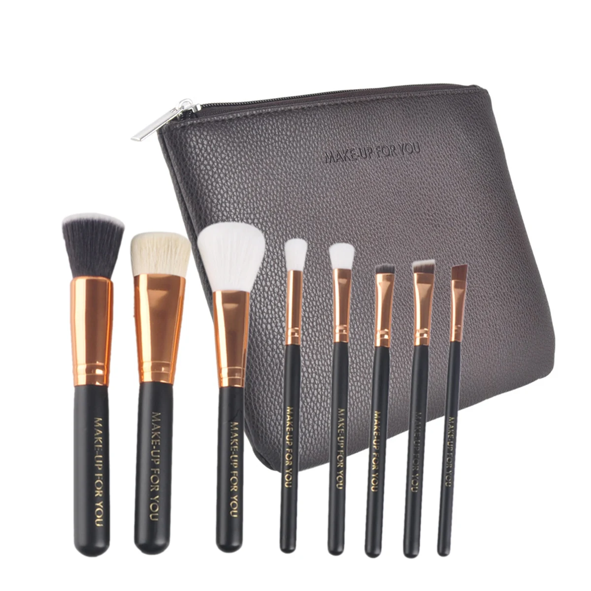 Макияж для вас, косметические кисти набор для выпечки лак деревянная ручка с разрезом на молнии, экокожа (полиуретан), сумка 8 шт./компл. макияж кисти для макияжа Золотая Роза трубки