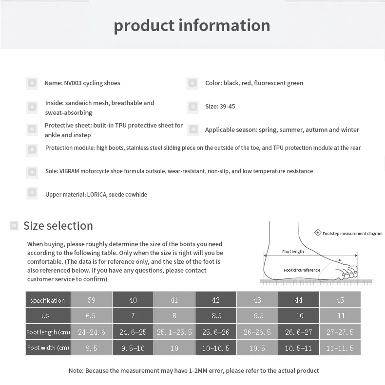 Американская система размеров: 6,5/7 / 8/8,5/9,5/10 /11 размер Сравните с Европейский размер: 39 /40 / 41 / 42 / 43 / 44 / 45 размер