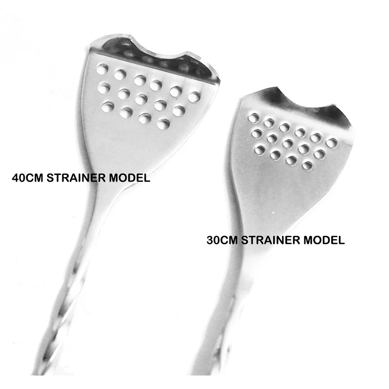 Барная ложка 30/40 см с удобным ситечком на конце хвоста и более гладкими краями по стеблю, уменьшающими трение пальцев.