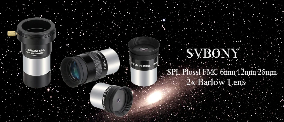SVBONY FMC 1,25 "SPL Plossl окуляр 6 мм 12 мм 25 мм 48 градусов угол обзора и 4-элементный дизайн + 2x Барлоу, комплект