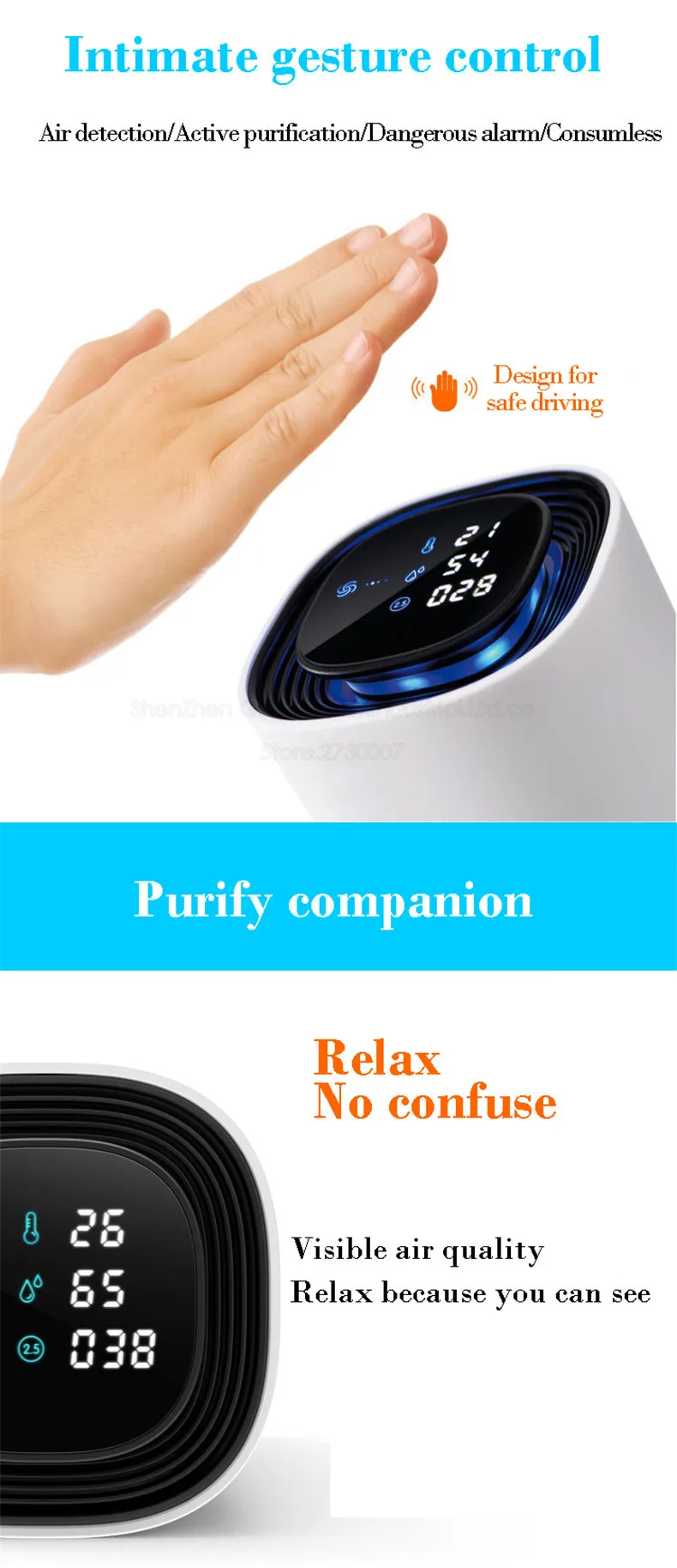 Features: gesture control, intelligent alarm, sterilization, dust removal, smoke, digital display, data monitoring......