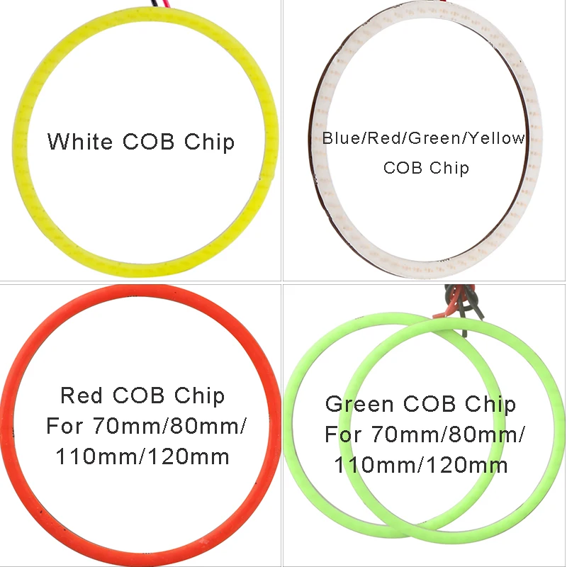 2 шт., галогенное кольцо COB 60 мм 70 мм 80 мм 90 мм 100 мм 110 мм 120 мм 12 В 24 В, Автомобильный светодиодный фонарь для фар ангельские глазки, противотуманные фары, дневные ходовые огни