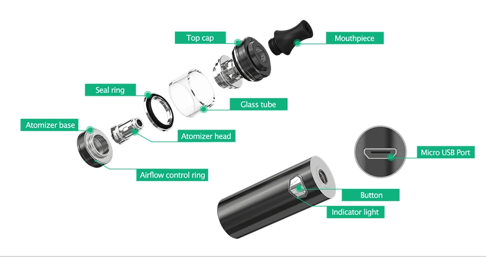 Питание от аккумулятора 1100 мАч, iJust mini также может прослужить вам долгое время пара.