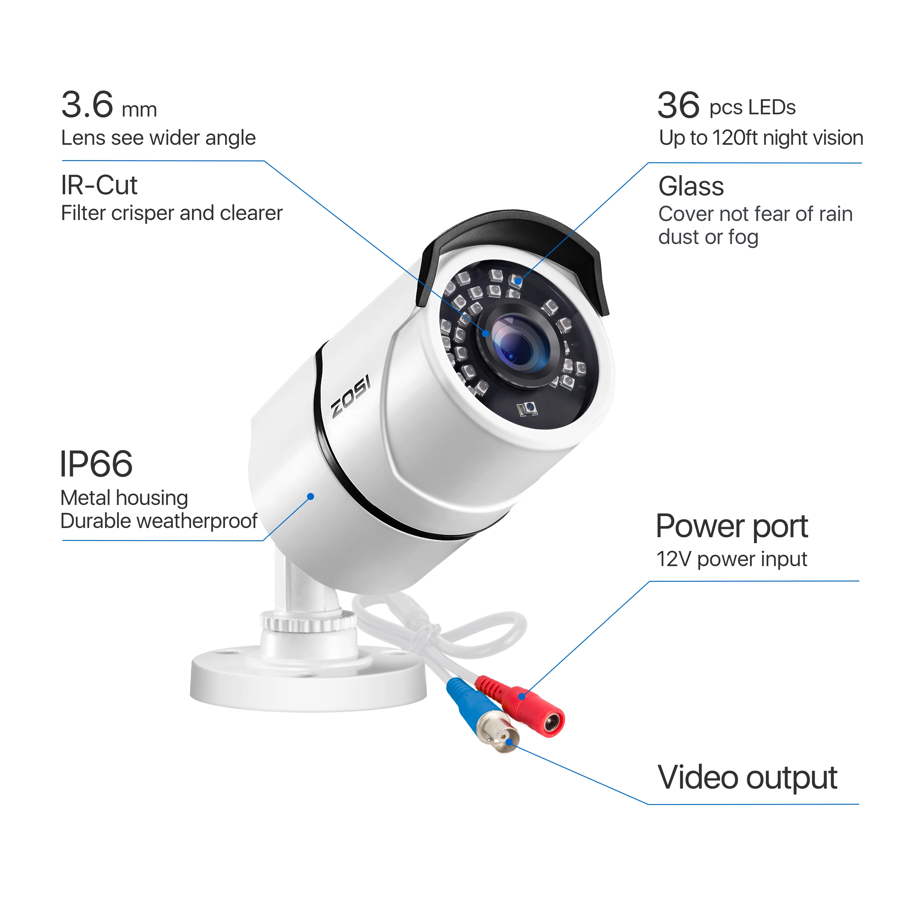 Brand NameZOSIModel Number8KS-2615W/B4S-10/20OriginMainland ChinaCertificationCEResolution5mpSmart home platformOtherCable Length18mPCS of Camera4PCSMeasurement unitpiece/piecesEach pack1Camera Image Sensor1/2.7" CMOS with ICRHorizontal Resolution5MPIR distanceup to 20MCamera TypeWeatherproof Outdoor CameraDVR Channels8CH 5MP Network TVI DVRLanguageRussian, English, Italian, Spanish, German, Japanese, Arabic, etc.Remote ViewAndroid, iPhone, iPad, Internet ExplorerHard DriveSupport 1 SATA port, up to 6TB