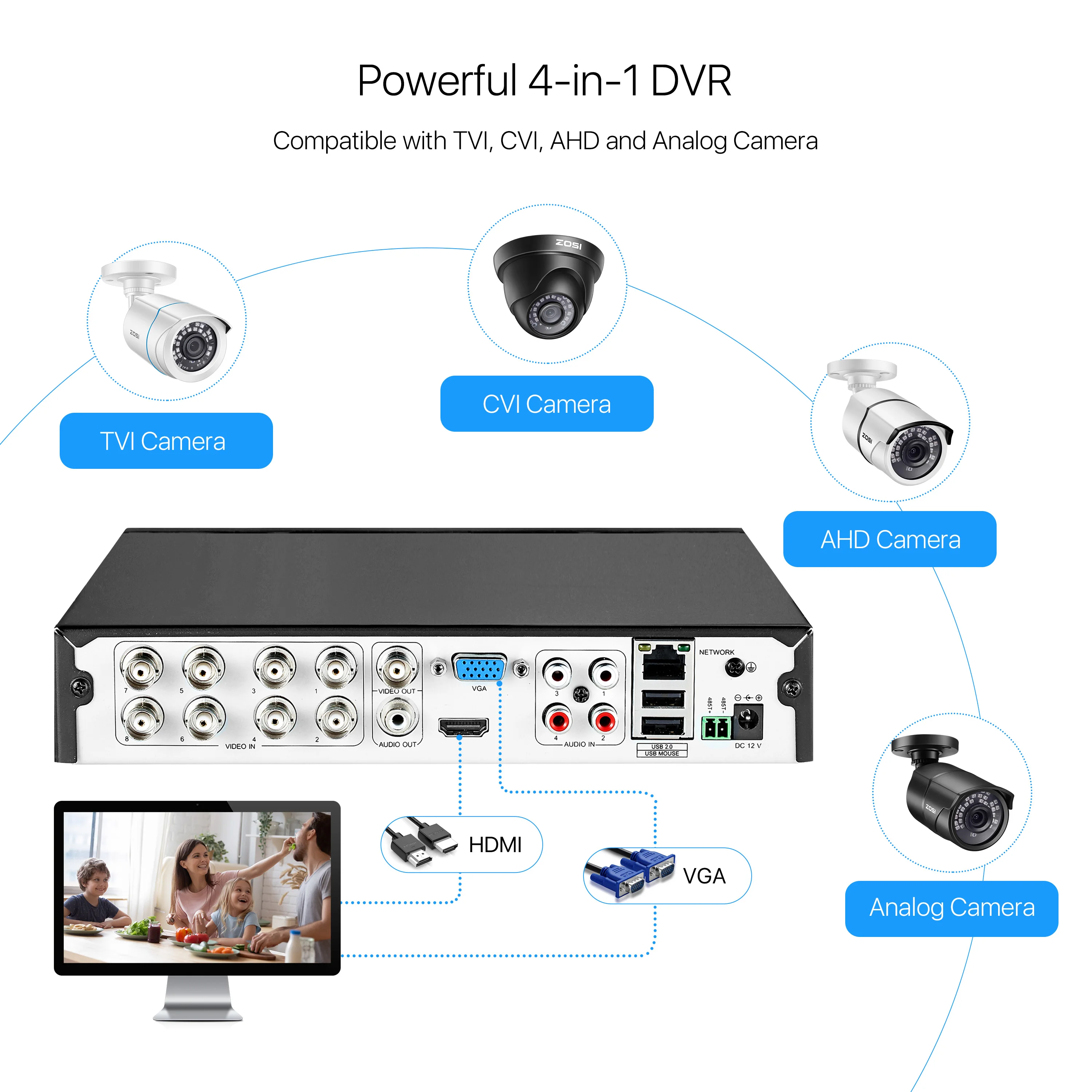 ZOSI H.265 5MP 8CH CCTV Surveillance Security Camera System Video DVR Kit CVBS AHD CVI TVI Waterproof Outdoor Home