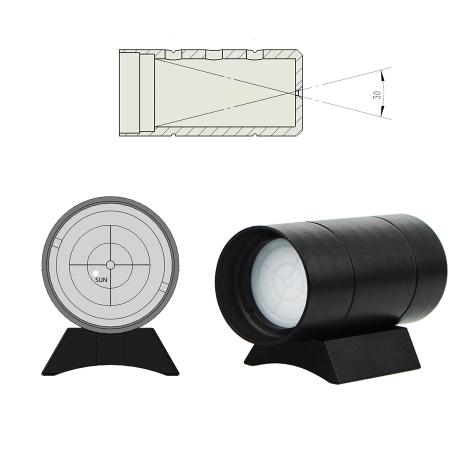 When total solar eclipse, partial eclipse happening, greatly shorten the searching time using this solar finder scope, manual tracking, people could observe the real-time location of it when the sun moving. With a Solar Finder scope in place there will never be a chance that anyone would attempt to try to view the Sun with a direct look through the unfiltered spotter scope