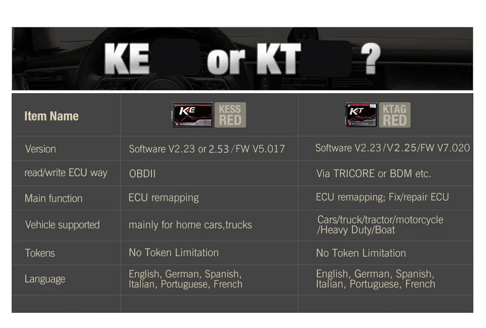 Если вы в основном по своему усмотрению, чтобы работать в течение 24V грузовик и трактор, Ktag V7.020 больше подходит для вас!1. Различные способы подключения:Для KESS V5.017, он может читать и записывать ECU через OBD2 кабель непосредственно для большинства транспортных средств, прост в эксплуатации.Для KTAG V7.020, он считывает и записывает ECU через TRICORE или BDM или другой режим с помощью специального кабеля, программное обеспечение поможет вам, как работать.2. Различный охват транспортного средства:Например: KESS 5,017 и Ktag v7.020 все могут работать для большинства для Toyota Denso ECU протокол, но только K-TAG 7,020 может работать для Toyota Hilux kun26 очень хорошо!KTAG V7.020 может поддерживать гораздо больше грузовиков/тракторов/мотоциклов, чем KESS V5.017!Для некоторых марок автомобилей. KESS V5.017 просто может прочесть его. Но KTAG V7.020 может читать и записывать.KESS V2 V5.017 новейший V2.53 EU красная печатная плата онлайн версия без жетонов ограниченный добавить больше протоколов OBD2 менеджер Тюнинг наборы ECU программирование Инструмент