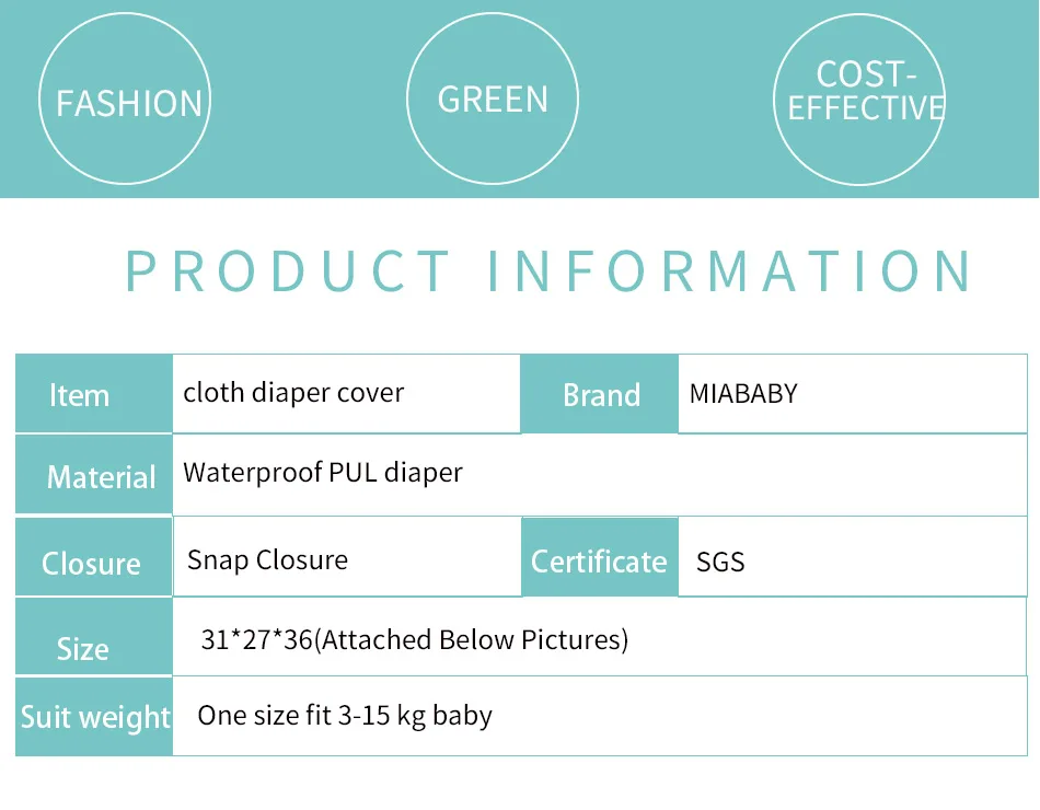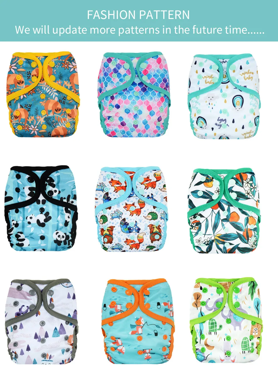 Внешний материал: водонепроницаемый принт Размер: 3-15 кг ребенка Застежка: застежка на кнопках Подходящая вставка: 3 слоя бамбукового хлопка + 1 слой замшевой ткани