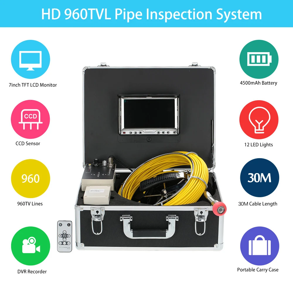 В контрольной трубчатой камерой, имеет возможность DVR и позволяет просматривать четкие и превосходные изображения и видео на 7 дюймовый монитор Встроенный в прочный, полностью мягкий чехол, который также хранит все комплекты для легкой транспортировки и использования. Это устраняет потребности в разрыве гипсокартона для обнаружения утечек и помогает решить проблемы с трубами. Это должно быть для любого домовладения, контрагента и даже профессиональных сантехников!
