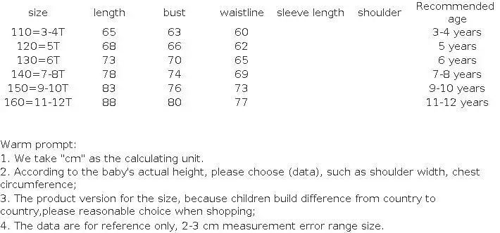 3. Вы должны посмотреть размер, который вы выбираете, потому что у детей есть различия в размерах между странами, пожалуйста, учитывайте это во время покупки