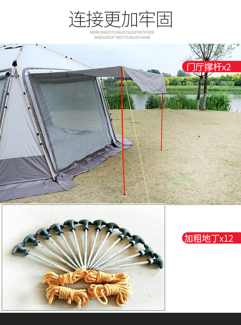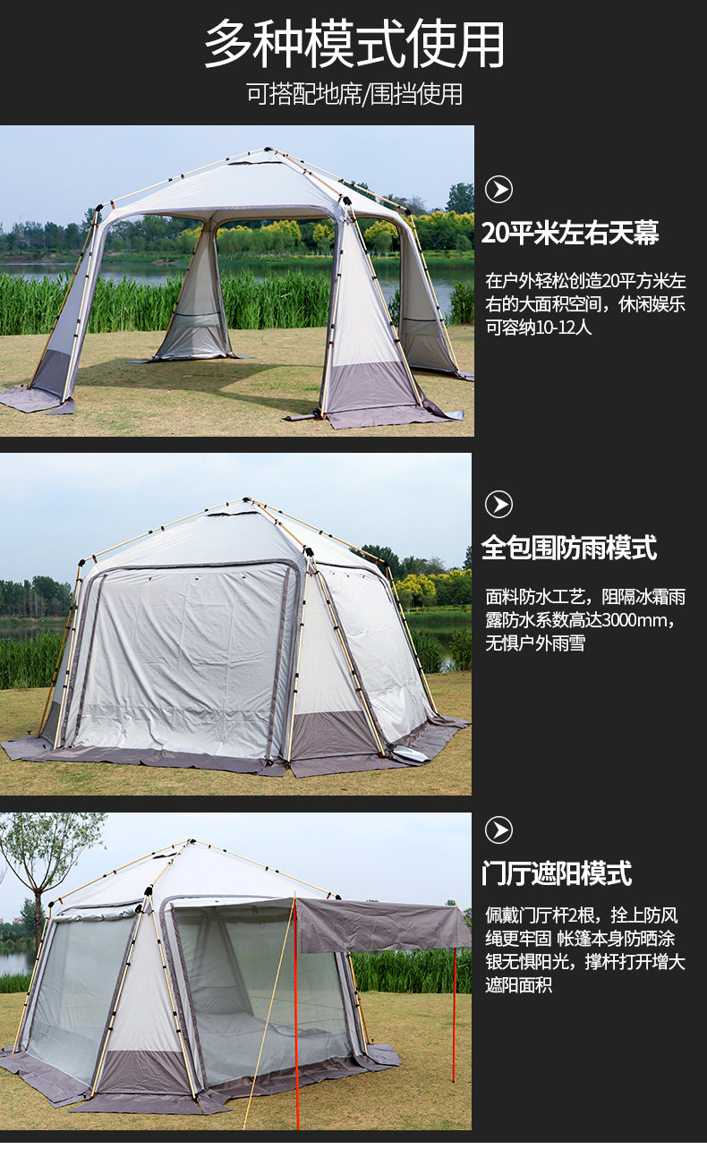 Материал Flysheet: полиэфирная ткань с серебряным покрытием 210T ripstop; Водонепроницаемое покрытие из полиуретана 5000 мм