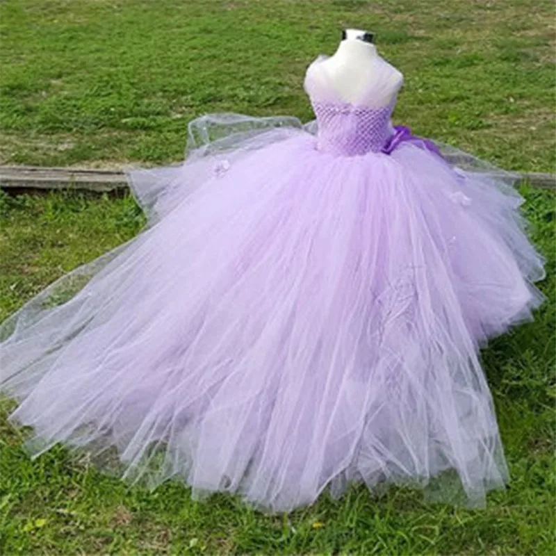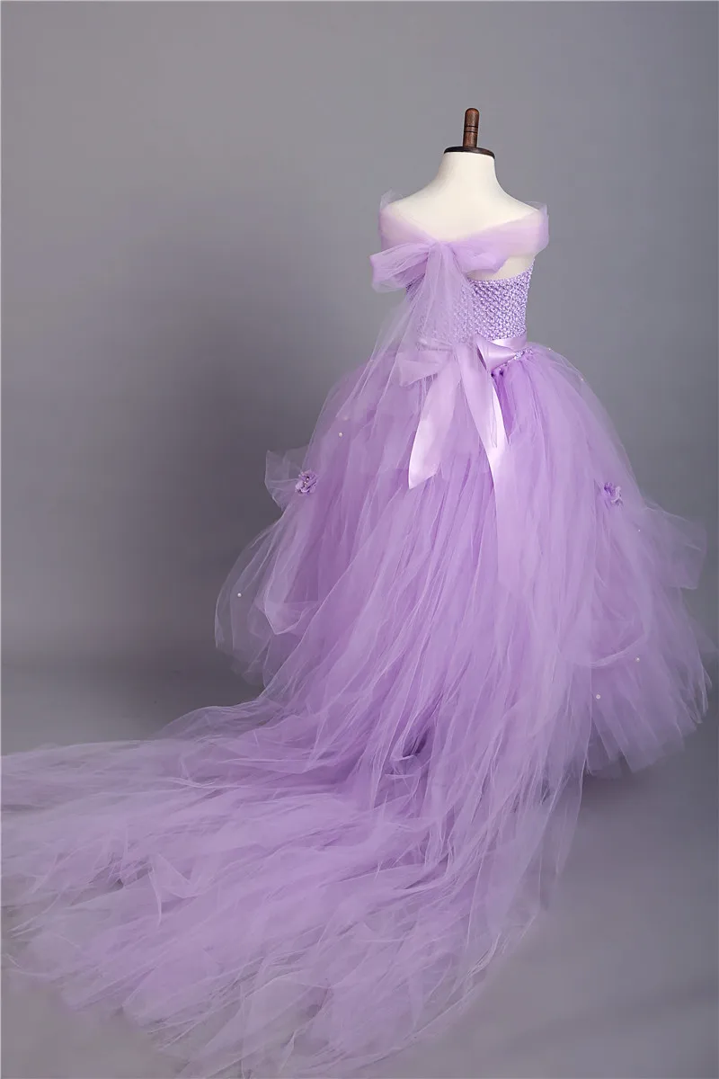 От 0 до 14 лет платье-пачка с цветочным узором для девочек Детские платья розового и лавандового цвета для девочек, праздничные Бальные платья, детское свадебное платье принцессы для девочек
