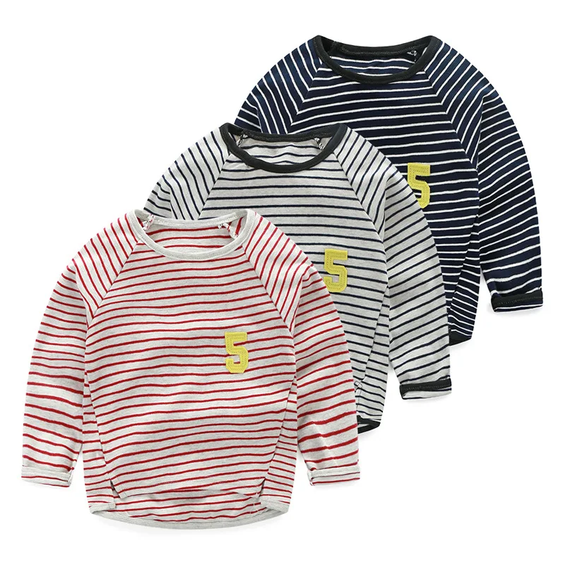 Футболка с длинными рукавами для маленьких мальчиков для мальчиков хлопковый свитшот в полоску O Средства ухода за кожей Шеи Топы корректирующие Демисезонный верхняя одежда Топы корректирующие От 2 до 6 лет Детская одежда