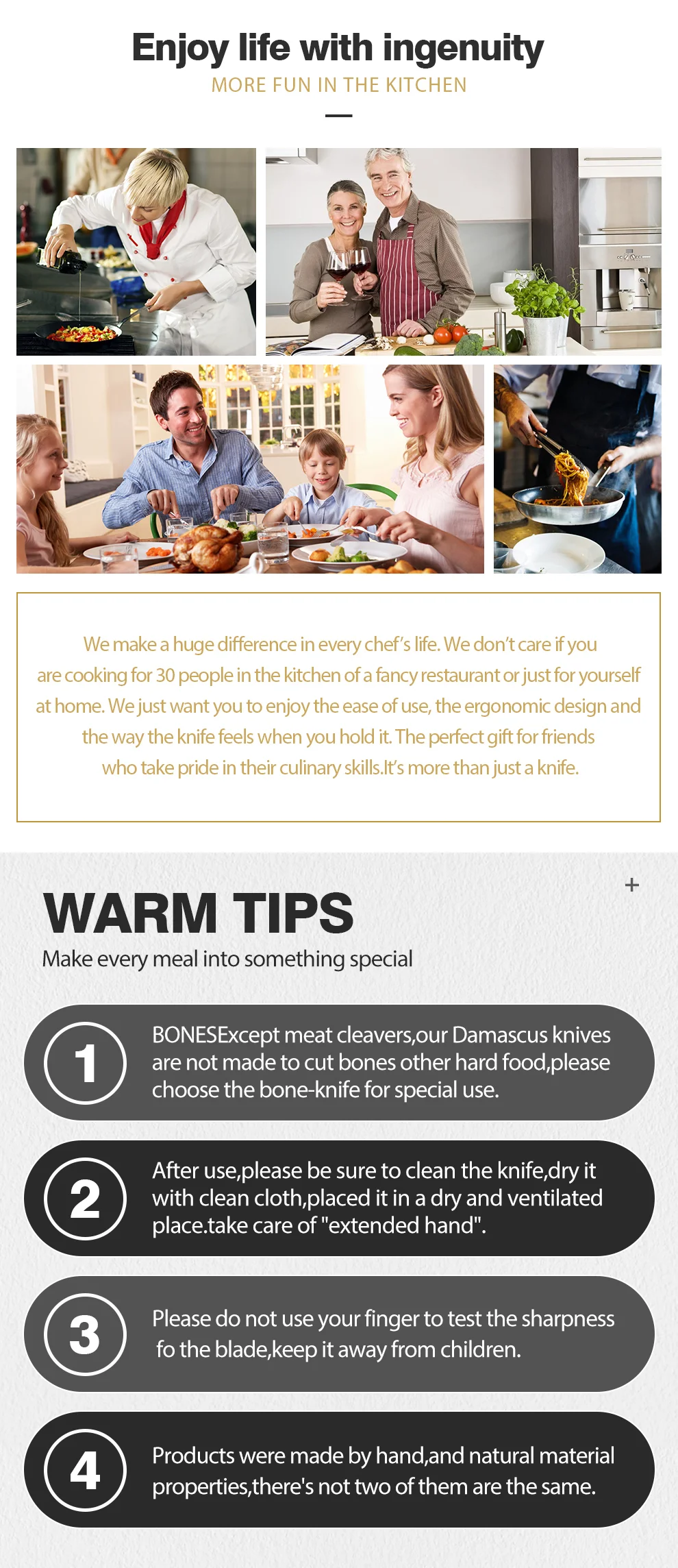 Материалы: 73 слоя дамасской стали и суперстали VG10
