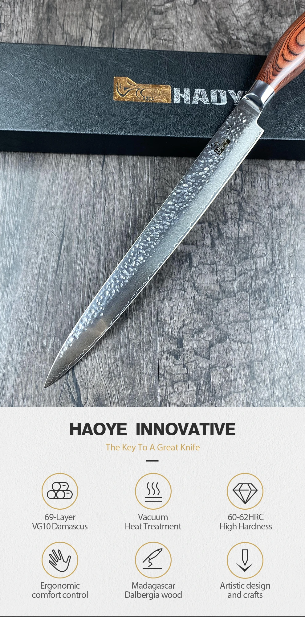 Ручная работа: 73 слоя чередующейся твердой и мягкой стали, лезвия HAOYE нагреваются