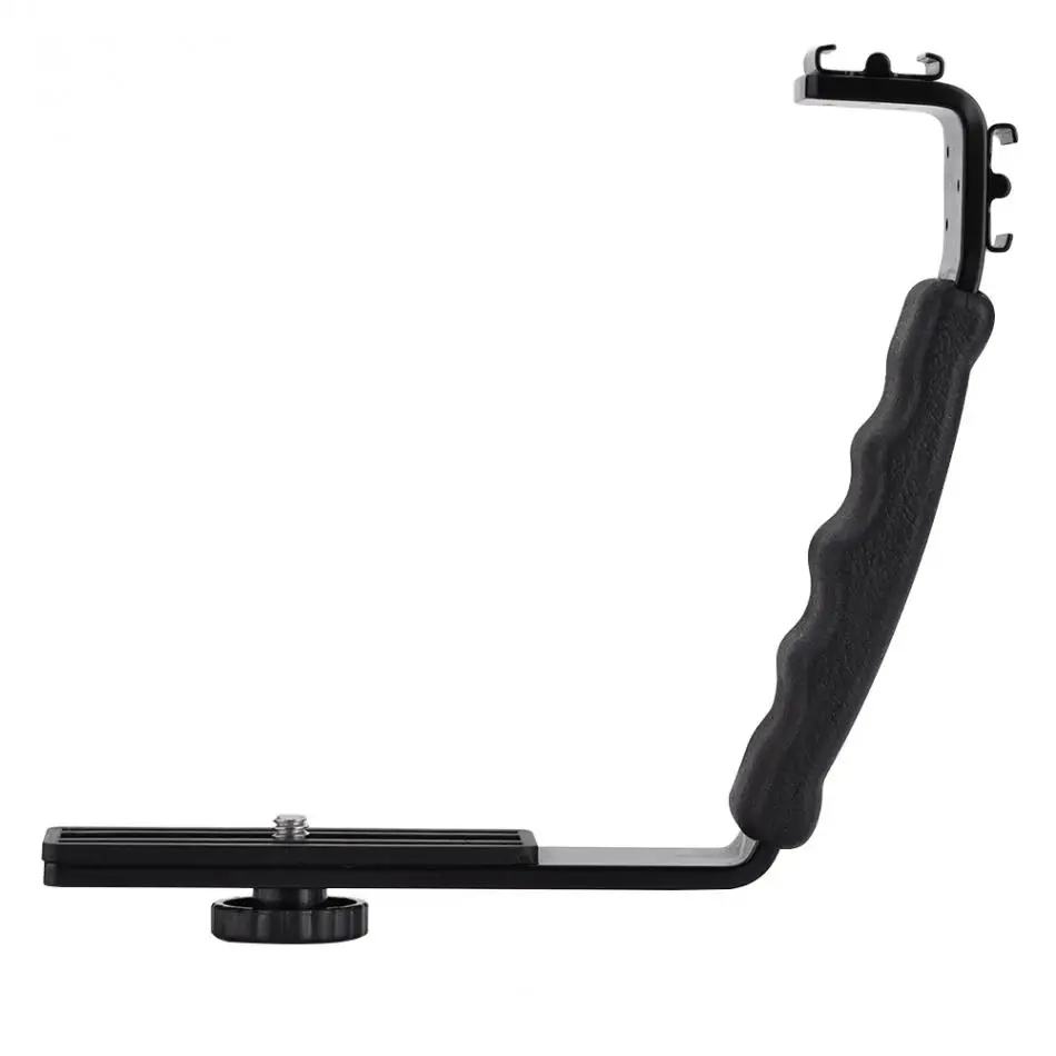 Изготовлен из качественного материала, этот товар прочный, прочный, портативный и легкий. У него две Горячие туфли, вы можете установить вспышку и другой аксессуар. Винтовая резьба международного стандарта 1/4 ''Подходит для большинства камер и видеокамер. Это идеальный аксессуар для любителей фотографии.