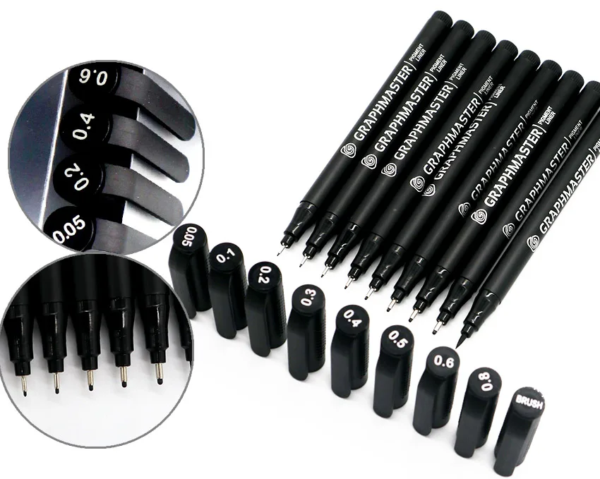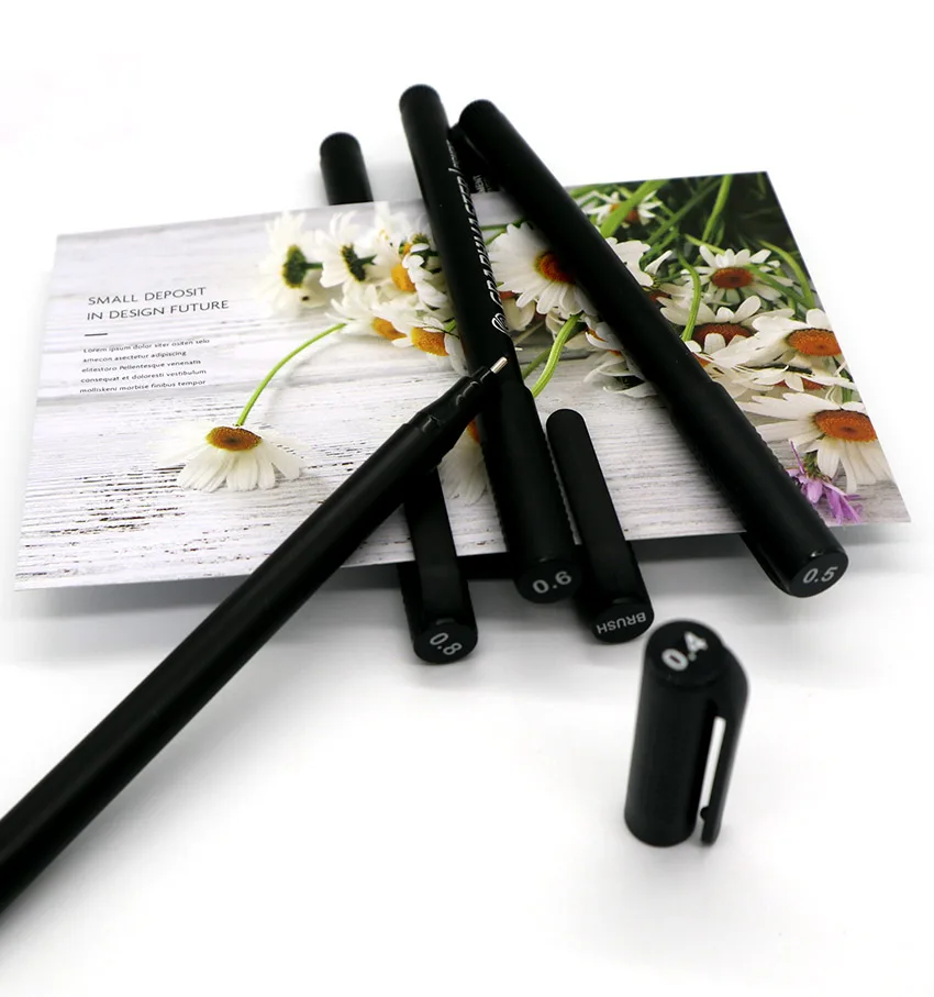 9 шт./лот чернильный маркер для подводки пигмента 0 05 1 2 3 5 6 8 разных кончиков черный