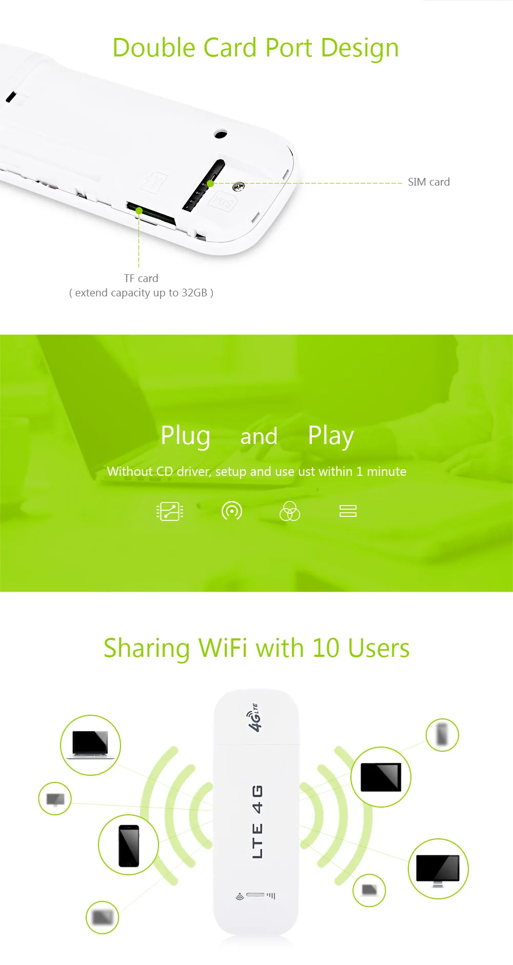 Описание:Если вам нужно использовать сеть LTE. Это устройство для вашей SIM-карты имеет сеть 4G и поддерживает Частотный диапазон B1, B3. Проверьте, поддерживают ли местные операторы эти два диапазона перед покупкой.Посылка 1x4G LTE USB модем