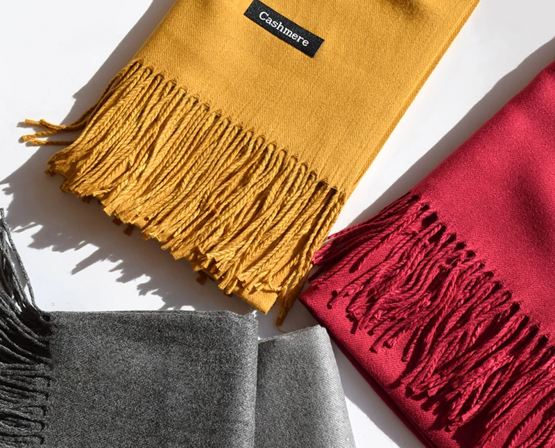 Женские однотонные кашемировые шарфы Luna & Dolphin, зимний толстый теплый шарф с кисточками, Женская шаль из пашмины, палантин высокого качества