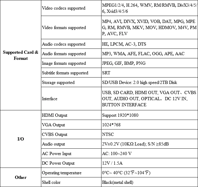 Товар:HD/VGA/CVBS выход авто петля воспроизведения медиаплеер