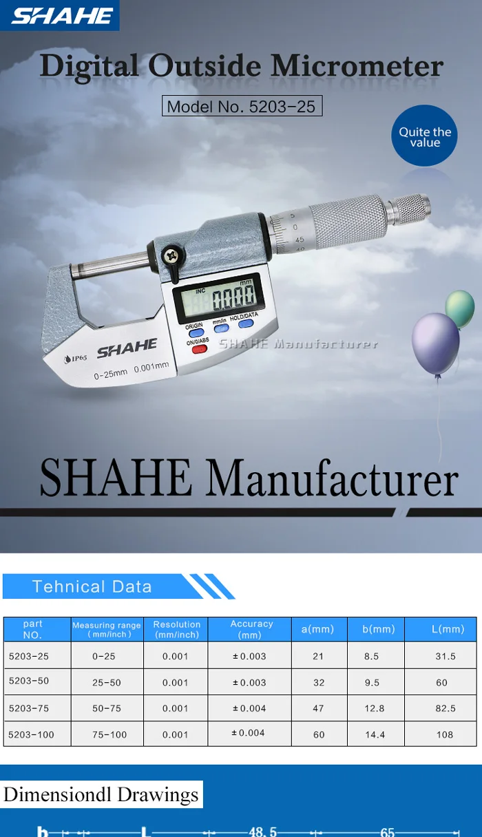 1. Диапазон измерения: 0-25 мм