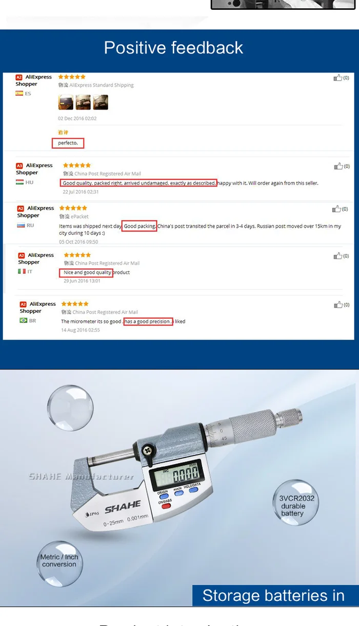 5. Измерительные поверхности изготовлены из карбида вольфрама.