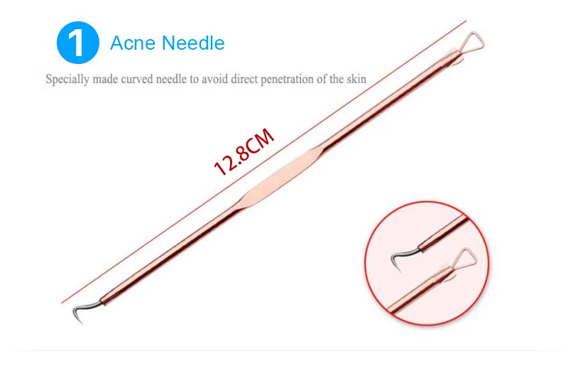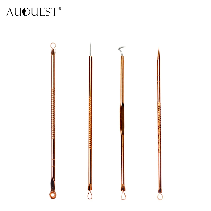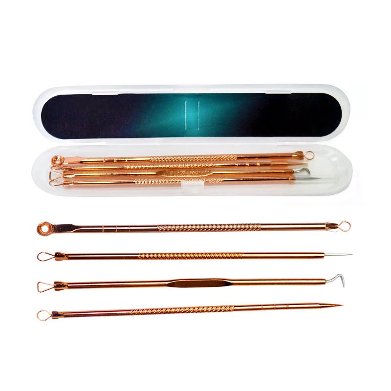 Нержавеющая сталь с покрытием розовым золотом, без чувствительности. Разумный дизайн, не повредит кожу, прост в использовании Различные стили для удаления черных точек, белых точек, прыщей, комедонов, мочалок, акне. Длина: 128 мм Вес: 7 г/шт. Посылка: 4 шт.