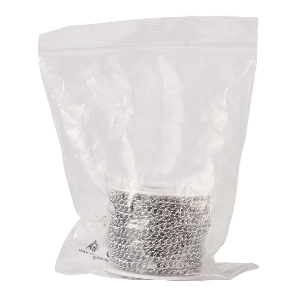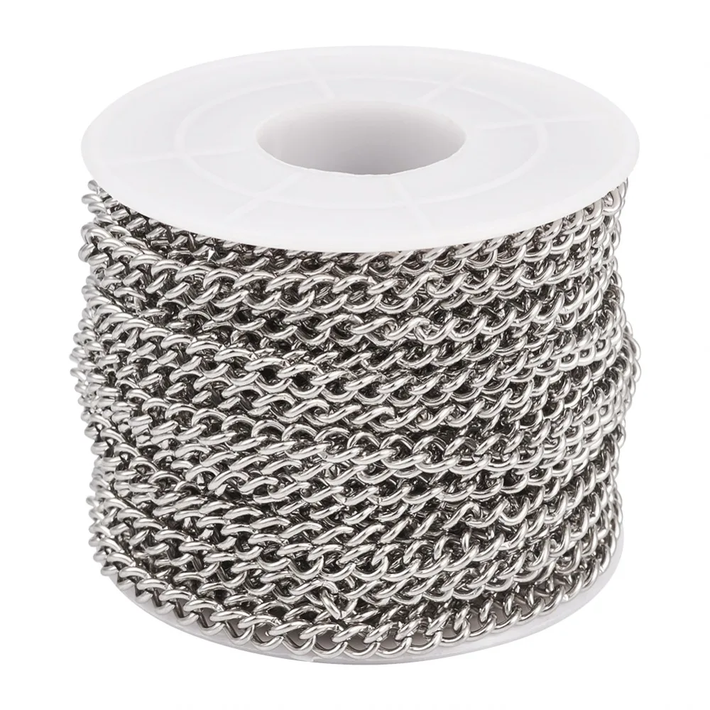 304 Stainless Steel Curb Chains, with Spool, Unwelded, Stainless Steel Color