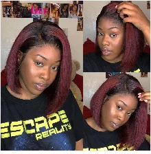FASHION LADY Pre Colored 1b 99j Bob Wig Lace Front Human Hair Wigs 13x4 Brazilian Straight Human Hair Wigs Red Wig Remy Hair