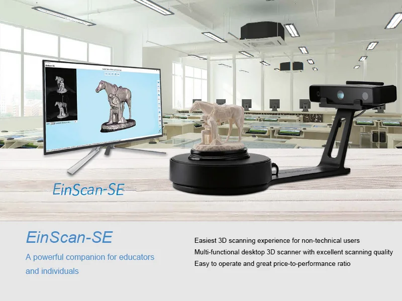 Режимы Двойного Сканирования: Автоматическое сканирование и фиксированное сканированиеШирокий диапазон сканирования от малого до большого.Простая эксплуатация, более быстрое сканированиеУдобство в использовании и Повышенная эффективностьВремя, необходимое для одного сканирования: EinScan-SE 8 s,Время, необходимое для сканирования на 360 градусов в режиме автосканирования: EinScan-SE 2 минуты, EinScan-SP 1 мин.Тонкие детали, каждое сканирование создает высококачественный файл данных 3DТехнология структурированного 3d-сканирования, большая мощность реконструкции реальной геометрии объекта с мелкой детализацией.Совместим для связи с 3D принтерамиАвтоматическая сетка для водонепроницаемости 3d-данных, обеспечивающая высококачественные 3d-данные для 3D-принтера, которые могут быть распечатаны непосредственно 3d-принтером,Предоставление услуг доступа к API для 3D-принтеров любых брендов.Автоматическое программное обеспечениеАвтоматическая Калибровка с жесткой настройкой не требуется;Сканирование одним нажатием;Автовыравнивание и слияние для прямого генерации сетки;Отправка файлов одним щелчком мыши для сохранения онлайн-файлов и обмена даннымиПоддержка сторонней платформы обмена данными для Службы доступа; Отправка файлов одним щелчком мыши для архивирования и обмена данными в режиме онлайн