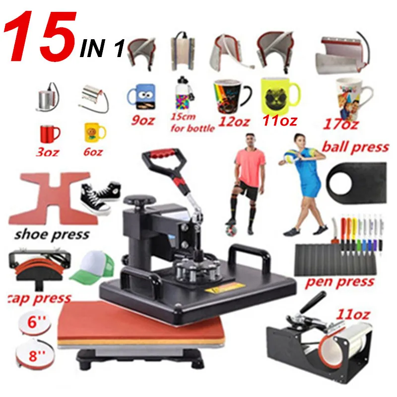 15 в 1 термопресс машина, сублимационный принтер/машина для переноса обуви ручка термопресс для кружки/крышки/футбола/бутылки/ручки/обуви/футболки