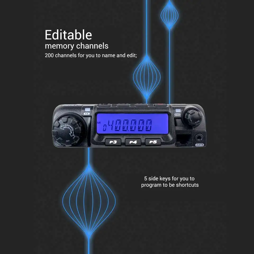 Высокая/низкая мощность TX на выбор: UHF(45 Вт/25 Вт/10 Вт) или VHF(60 Вт/25 Вт/10 Вт)