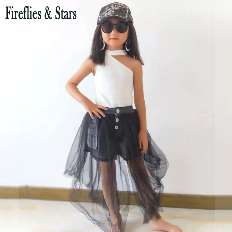 Имя:Летняя майка для девочек, детские футболки, детская футболка, Детская уличная одежда с вырезами на одно плечо, белый, черный, на возраст от 3 до 12 лет