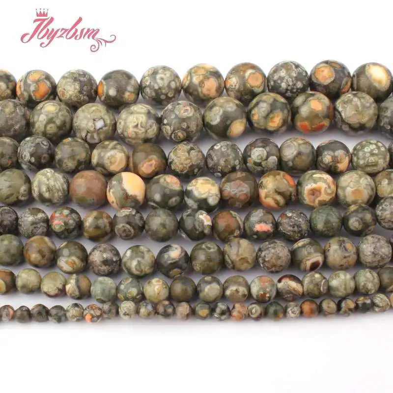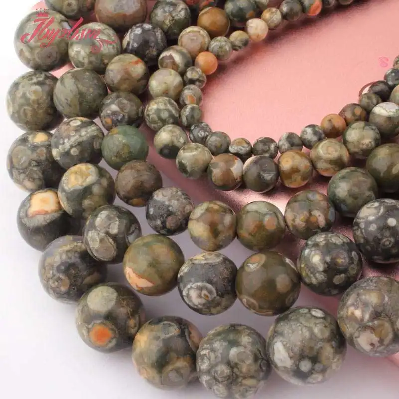 Натуральный зеленый Rhyolite Kambaba Ясперс круглые свободные бусины Spacer 4/6/8/10/12 мм Камень Бисер для изготовления объемных ожерелье и колье Strand 15 "Бесплатная доставка